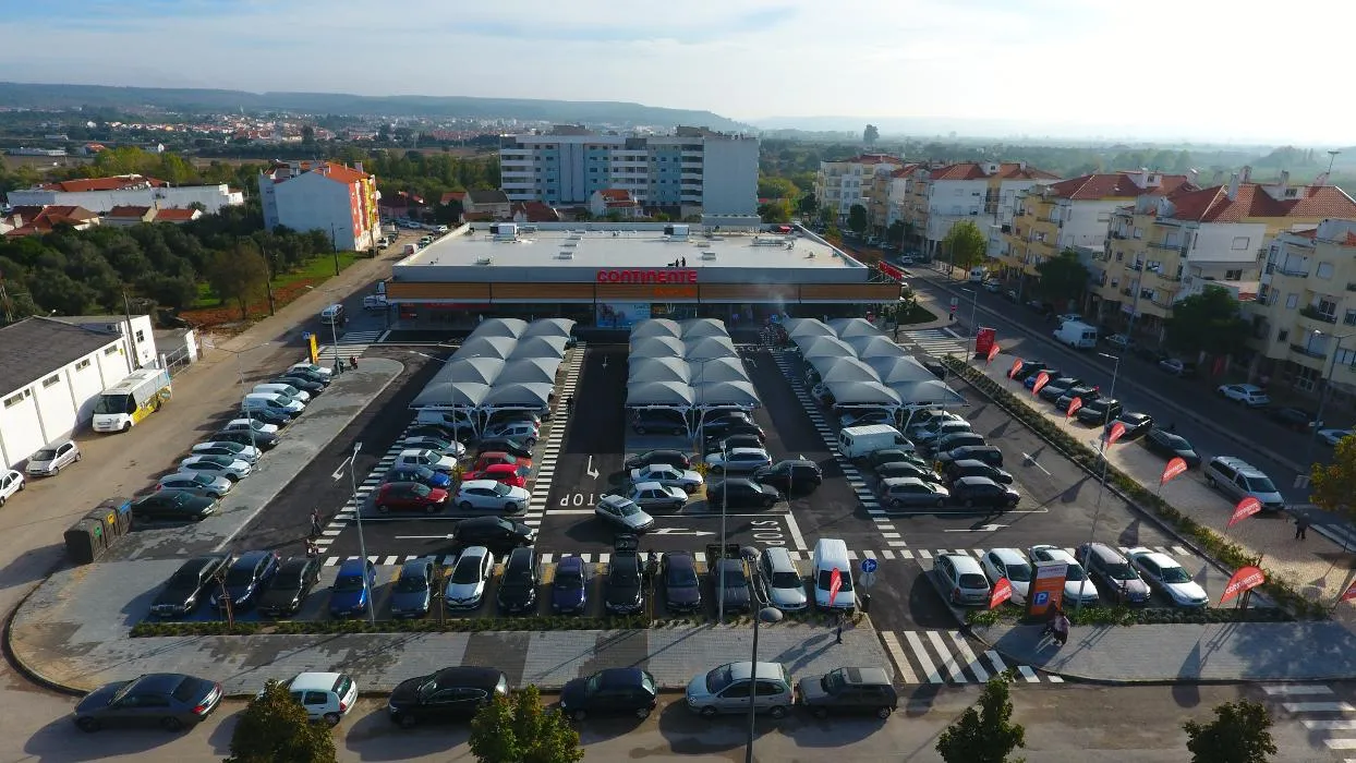 Esta loja Continente disponibiliza um parque de estacionamento a todos os seus clientes com lugares destinados a pessoas com mobilidade condicionada e lugares reservados para famílias.